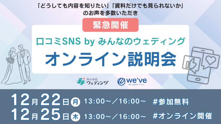 「口コミSNS by みんなのウェディング」オンライン説明会の開催決定!(参加無料)